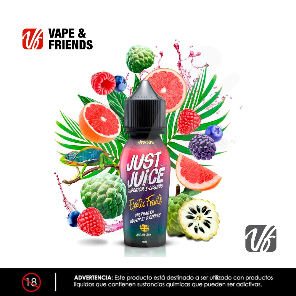 Una verdadera obra maestra de sabor que se destaca por su vibrante y exótica mezcla de frutas, ofreciendo una experiencia de vapeo incomparable para aquellos que buscan algo único y completamente libre de nicotina. Just Juice Fusion & Exotic es un líquido premium está meticulosamente diseñado utilizando solo los ingredientes de la más alta calidad disponibles en el mercado, asegurando que cada inhalación esté llena de sabor puro y auténtico.