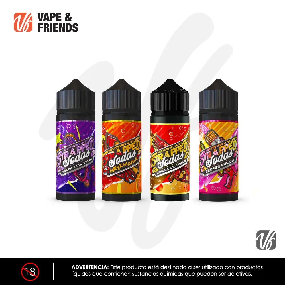 ¡Prepárate para la explosión de sabores con Strapped Sodas Sub-Ohm – Liquido! Esta nueva joya de la familia Strapped-Liquids está causando sensación con su combinación única de frutas frescas y refrescantes bebidas gaseosas. Desde el torbellino de Grape Soda Storm hasta el puchero tropical de Totally Tropical, cada sabor es una experiencia de vapeo emocionante y satisfactoria.